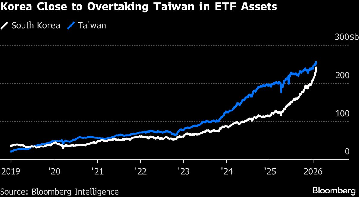 South Korea’s ETF Boom Puts Assets on Track to Overtake Taiwan