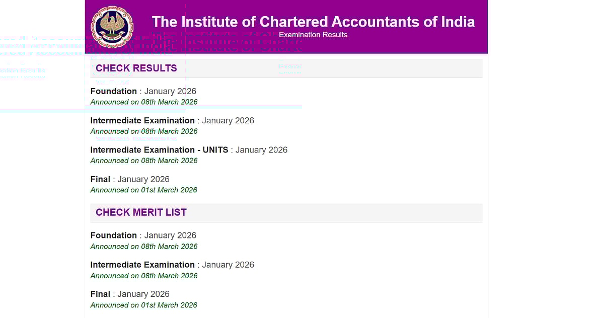 Candidates can visit icai.nic.in to view their results online. The results of the January session are "likely to be declared by the afternoon of 8th March 2026," the institute stated in an official statement dated March 2, 2026.