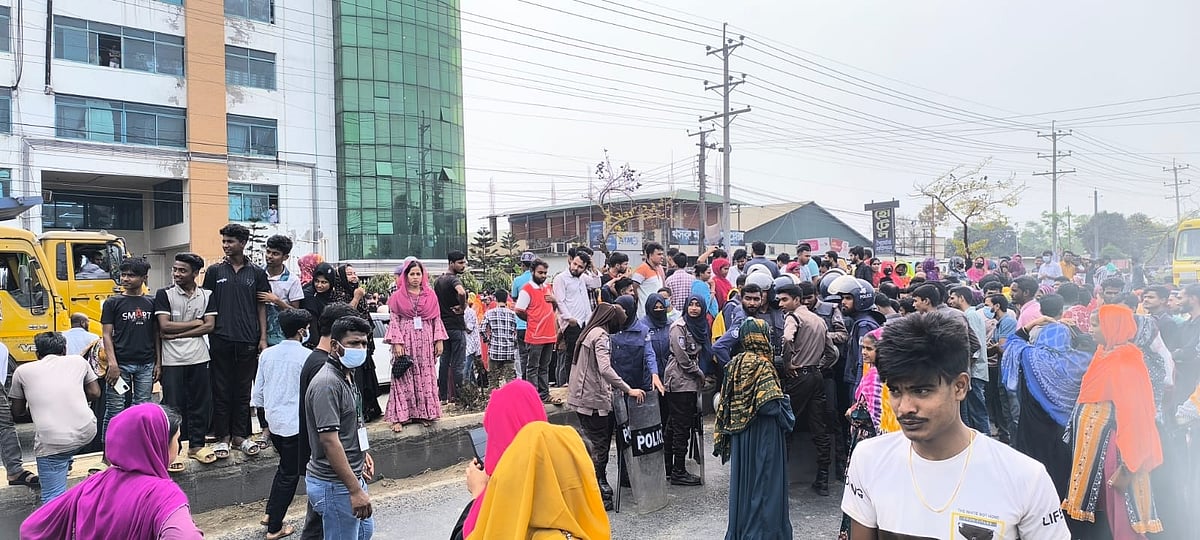 ময়মনসিংহে বেতন-বোনাসের দাবিতে শ্রমিকদের সড়ক অবরোধ